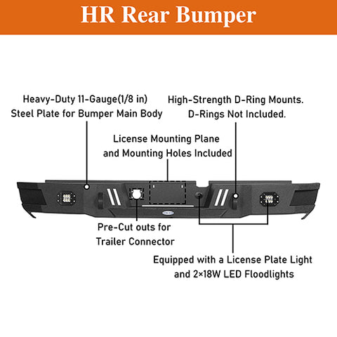 Boosts Style and Protection. If you want to enhance your truck’s looks and protection at the same time, gear it up with this Hooke Road HR Rear Bumper. This rear bumper gives your truck’s rear a more aggressive look with its rugged build and all-black coating. What’s more, its heavy-duty construction helps deflect road debris and prevents your vehicle from sustaining major damages in case of rear-end crashes.