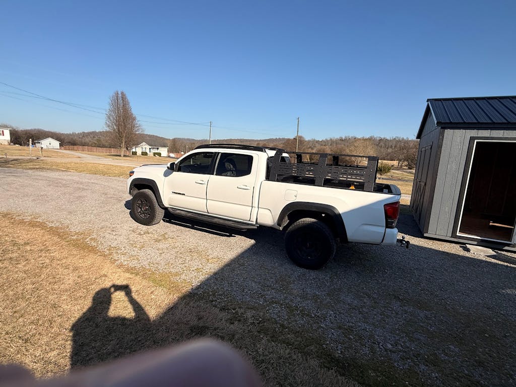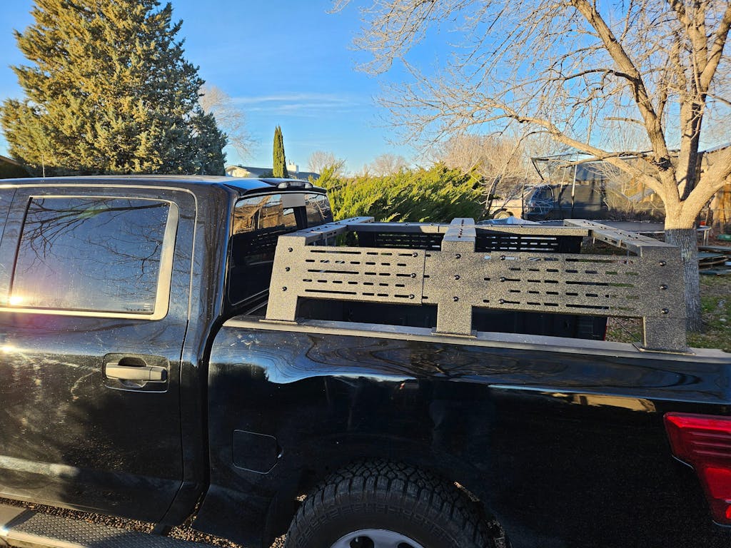 - Package includes: Bed rack assembly, mounting hardware, Installation info