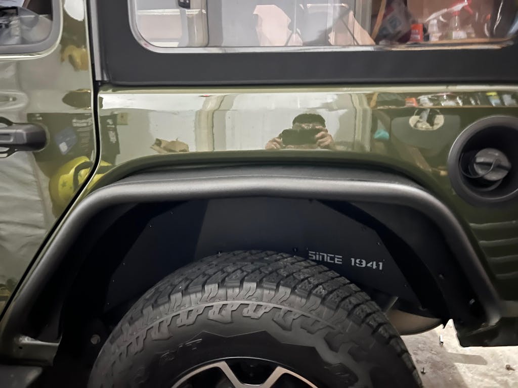 Extra Protection. The Aluminum Front Inner Fender Liners are expertly crafted to provide style and functionality. Their lightweight, anti-corrosion design ensures durability without the risk of rust, making them ideal for various weather conditions. Featuring a fashionable style adorned with a star logo and the words "SINCE 1941," they enhance your vehicle's appearance while offering essential protection against gravel, muddy water, rocks, sand, and debris.