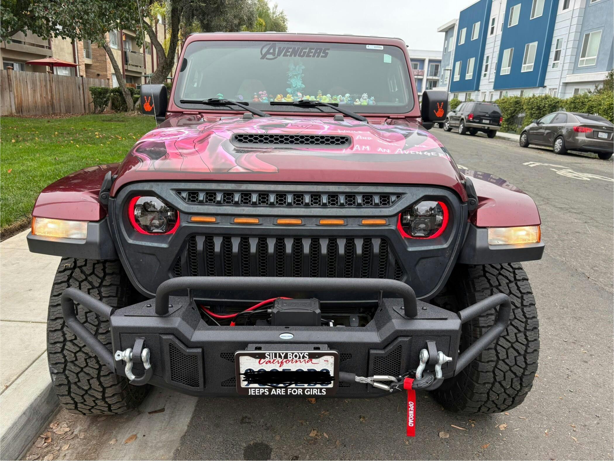 Bolder All-Terrain Confidence. The Hooke Road Tubular Front Bumper for Wrangler JL and Gladiator JT models combines robust functionality with a distinctive appearance. Its tubular structure exudes strength and durability, surrounding the bumper to provide enhanced protection for off-road adventures. The bumper's powerful design features an aggressive tube grille guard and two up-angled tube wings, giving it a rugged and commanding presence on the road or trail. Additionally, it comes equipped with a winch plate capable of accommodating up to a 12,000 lbs capacity winch, ensuring reliable recovery capabilities in challenging situations. The inclusion of completely welded D-ring mounts with 9,500-rated D-rings further enhances its functionality, providing secure attachment points for recovery operations.