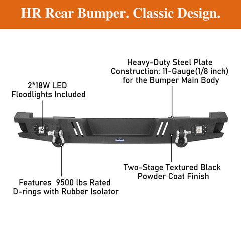Rear Bumper w/LED Floodlights(84-01 Jeep Cherokee XJ)- HR - Hooke Road
