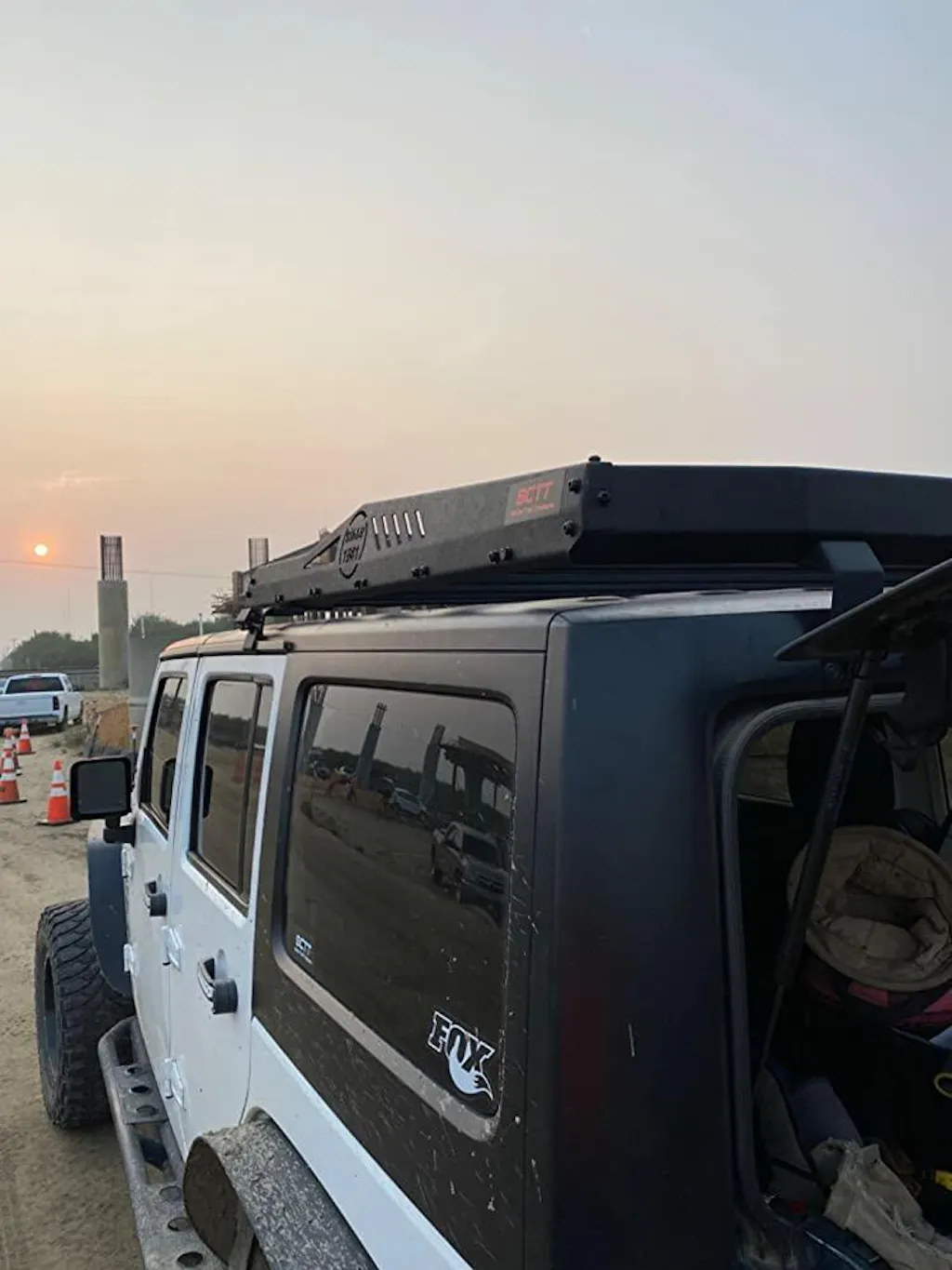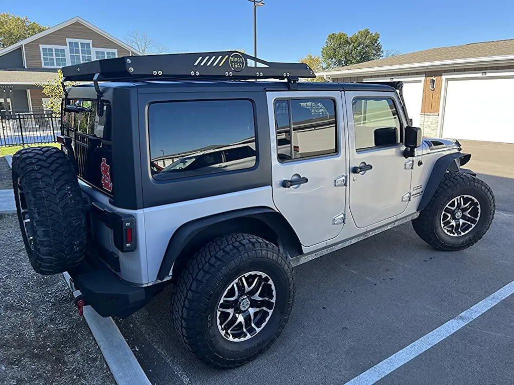 The Jeep JK rear roof rack is built from heavy-duty steel to ensure maximum durability against heavy loads. It is coated with a durable black powder coating to ensure lasting protection against corrosion.